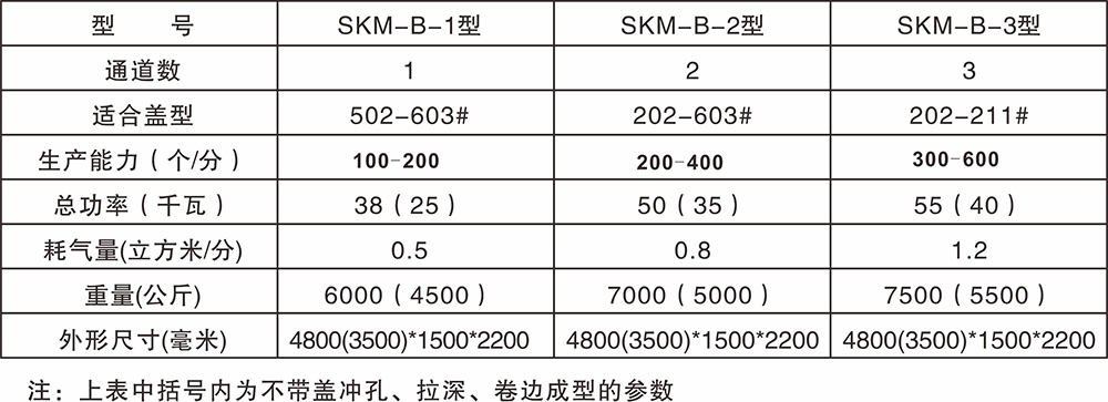 SKM-B系列铝箔易撕盖生产设备 该系列设备可用来生产202-603#易撕盖,尤其适合于307-603#大型的铁易撕盖。自动完成下盖、冲孔、拉深、卷边、冲铝箔预封、封口、压花、输出等功能。独立伺服控制的各功能??椋傻ザ赖鹘诓问⒖墒迪指咚傧煊巴蕉鳎背迮帕械姆绞娇墒孤敛朔炎钌佟? 可根据用户需求,设计新机型。 图片,参数仅作参考,如有改动,恕不另行通知。